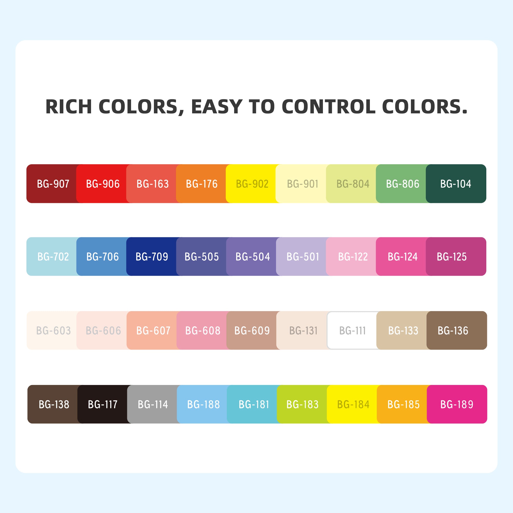 - Set completo de 36 colores: Esta colorida colección ofrece tonos vibrantes para mezclar, superponer y combinar. Ideal para diarios, álbumes de recortes, manualidades y decoración, con infinitas maneras de expresar tu estilo.