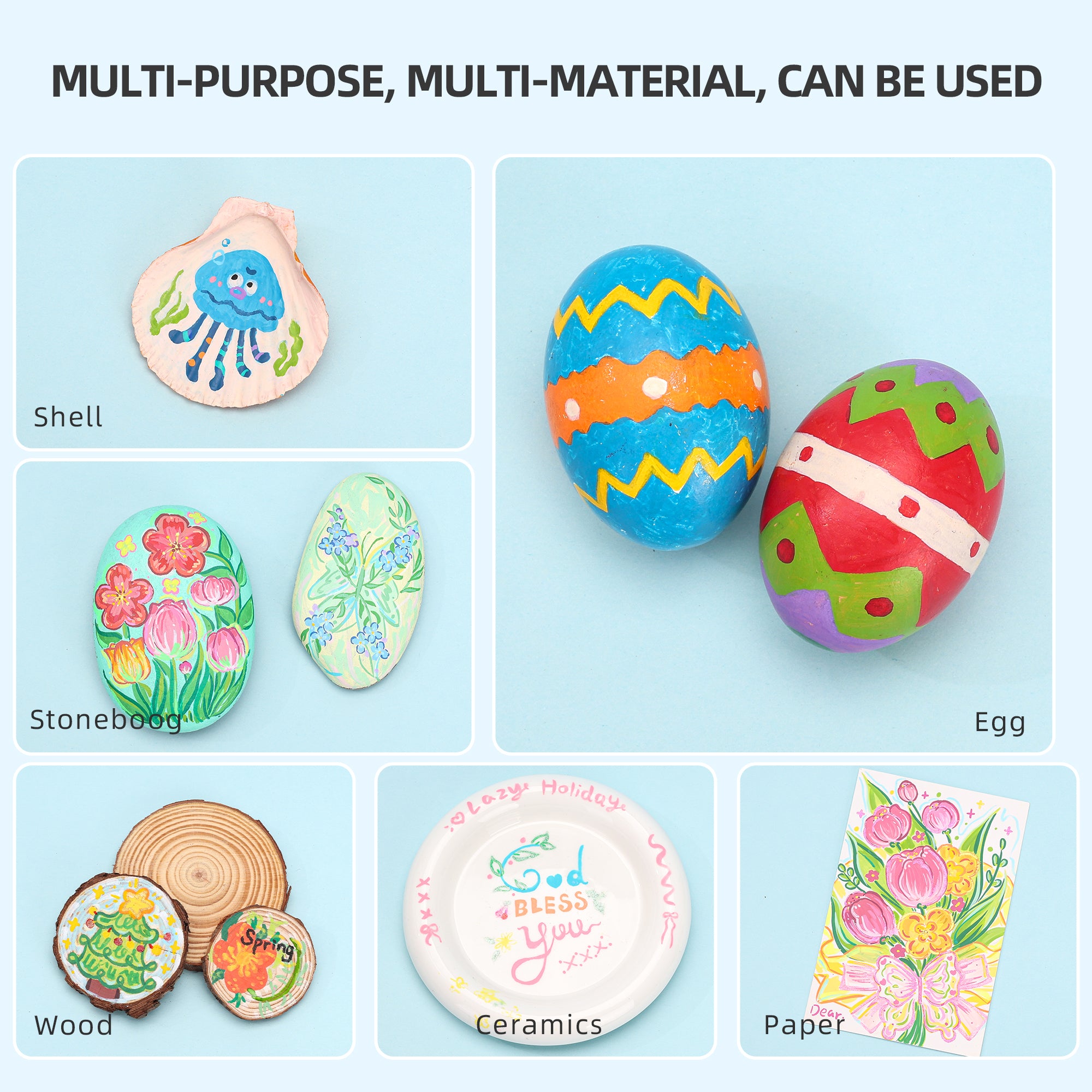 - Versatilidad en múltiples superficies: Estos bolígrafos de gel acrílico se deslizan sin esfuerzo sobre papel, piedra, vidrio, tela, madera y más. Ideales para experimentar con efectos de textura y adornos 3D en diversas manualidades.