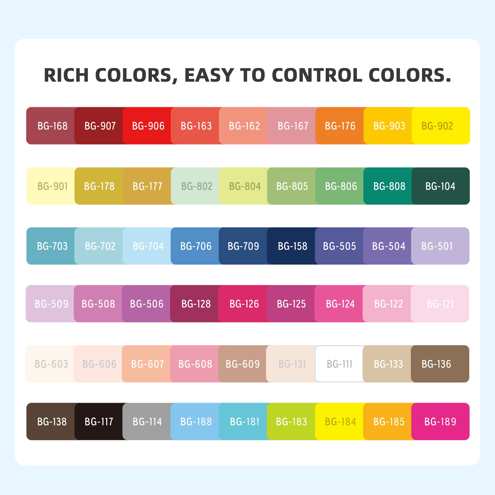 - Cobertura vibrante y opaca: Cada rotulador proporciona una tinta suave y de alta pigmentación que se ve nítida tanto en superficies claras como oscuras. Perfecto para superponer colores y crear profundidad y mezclas personalizadas.