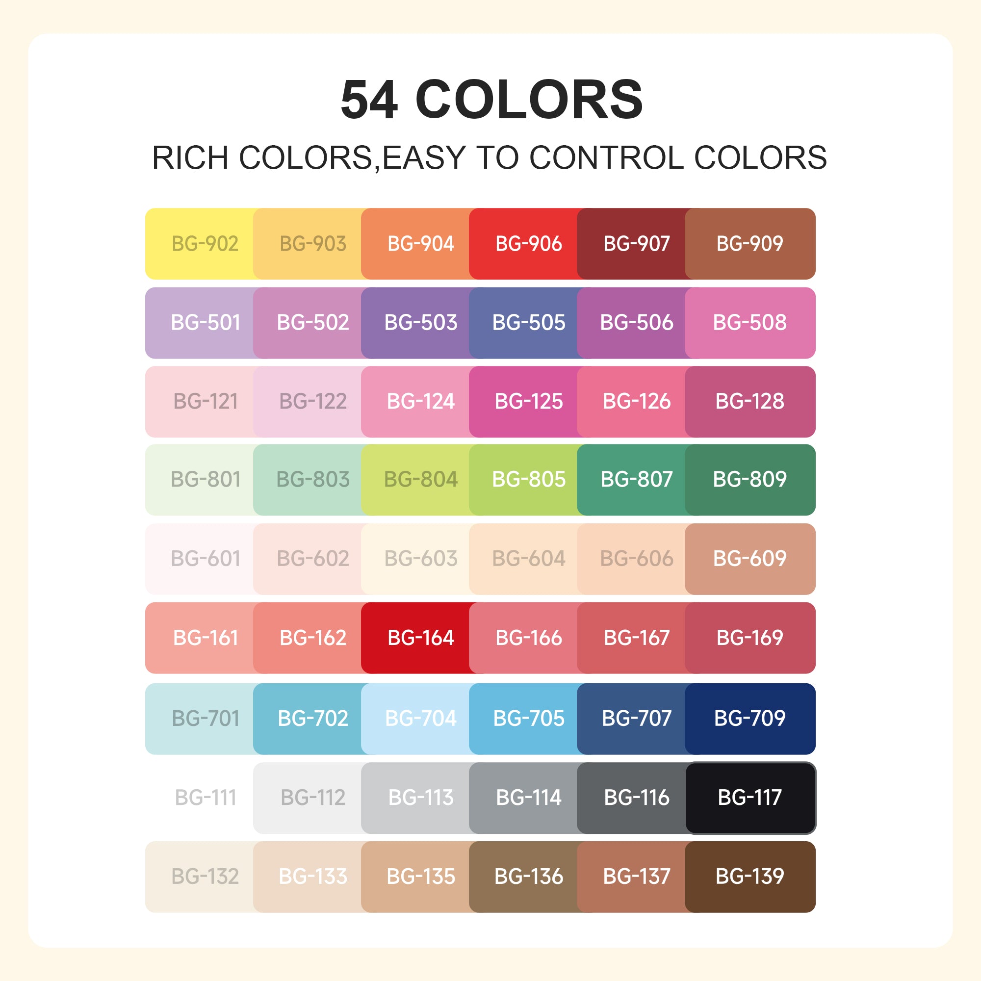- Cobertura vibrante y opaca: Cada rotulador deposita una tinta opaca de alta pigmentación que resalta tanto en superficies claras como oscuras. Ideal para crear capas, sombreados y mezclas de colores personalizadas.