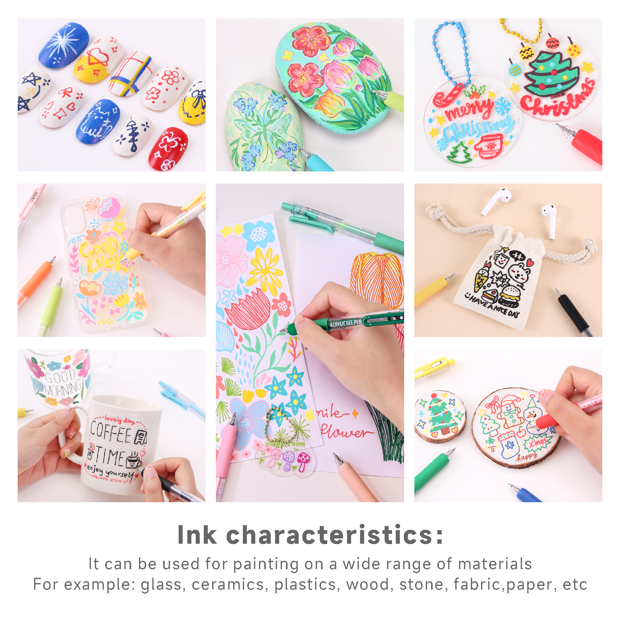 PLUS Bolígrafos de gel acrílico para colorear, set de 90 colores, bolígrafos de pintura acrílica 3D - Punta mejorada