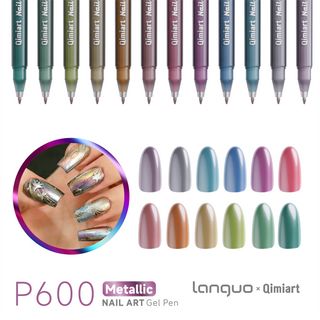 Stylo gel métallisé Languo x Qimiart 12 couleurs pour nail art - Couleurs classiques