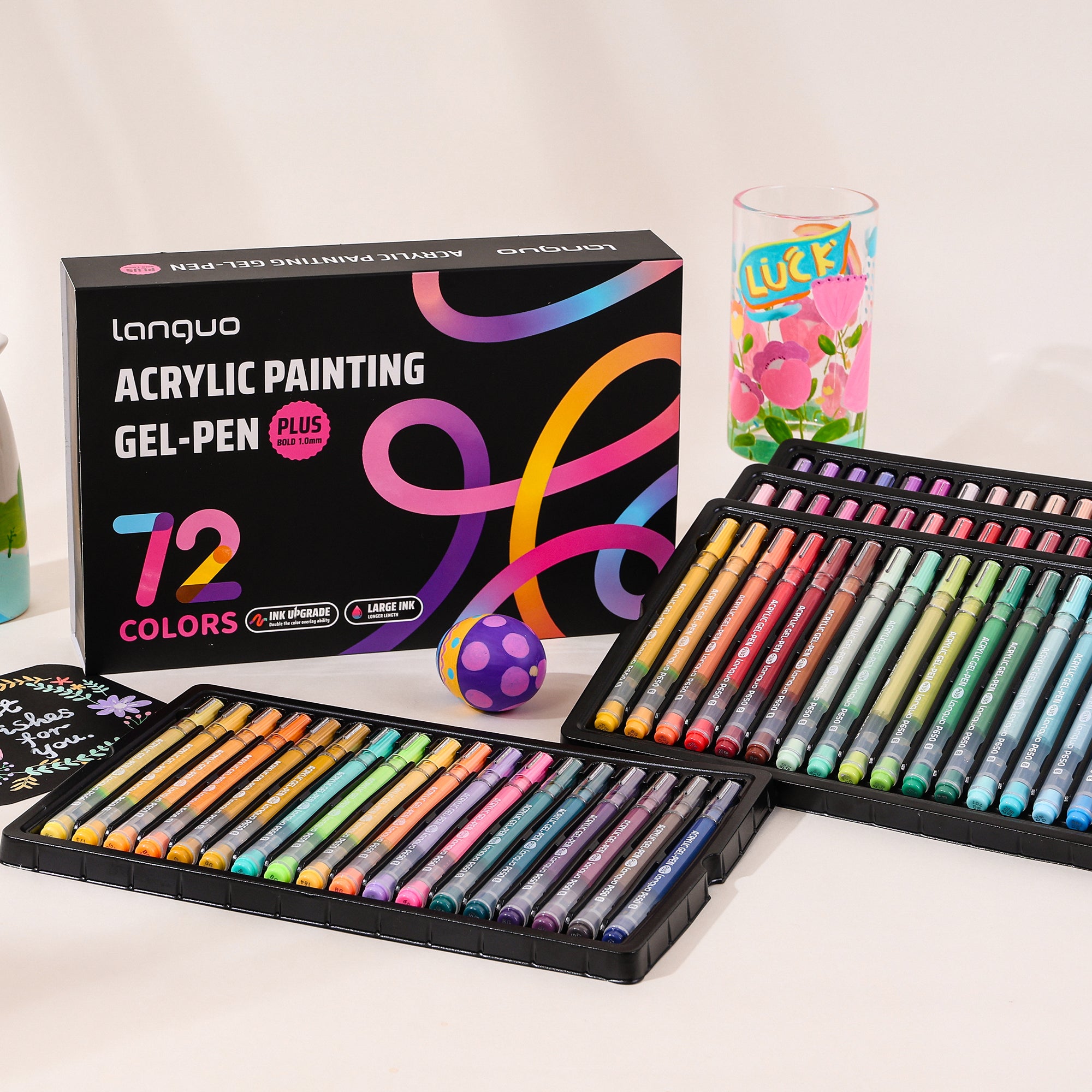 Stylos gel acryliques PLUS pour le coloriage, ensemble de 72 couleurs, stylos de peinture acrylique 3D - Pointe améliorée