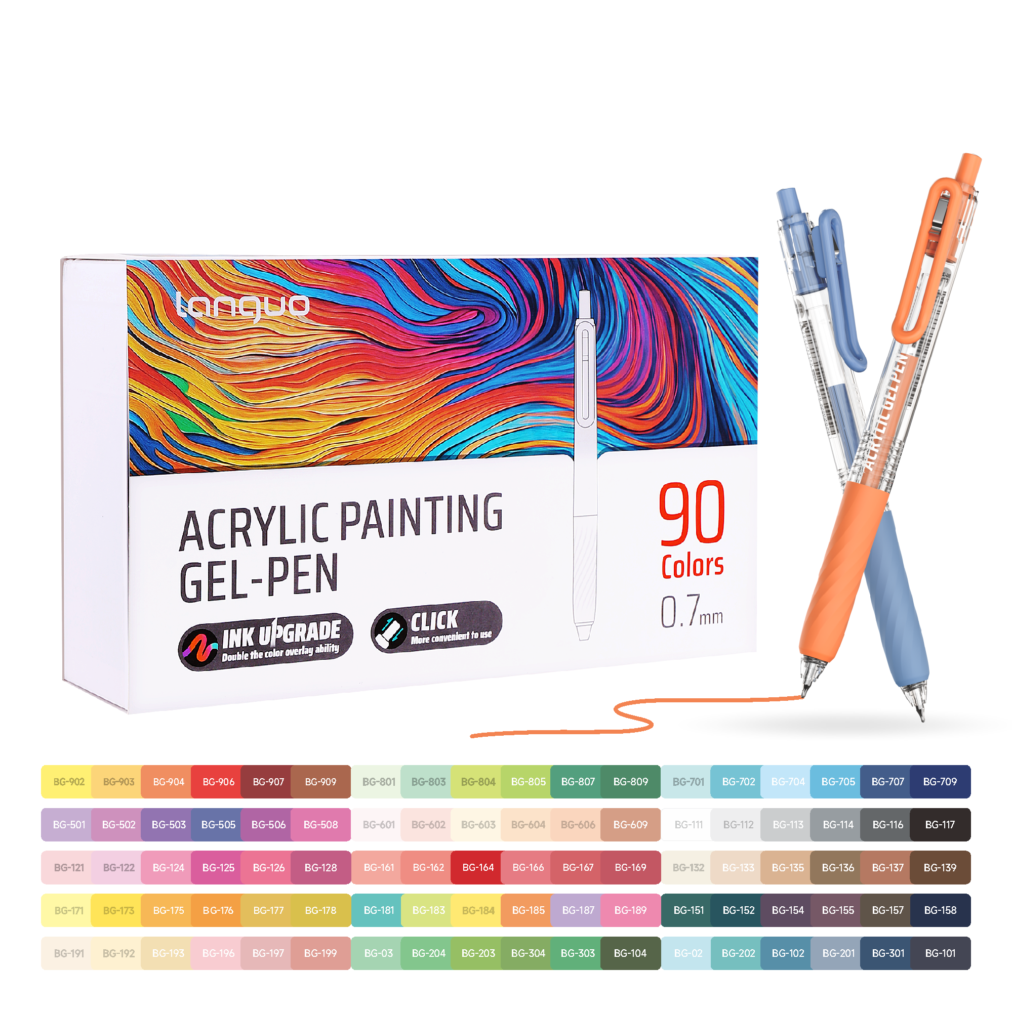 PLUS Stylos gel acryliques pour coloriage, ensemble de 90 couleurs, stylos de peinture acrylique 3D - Pointe améliorée