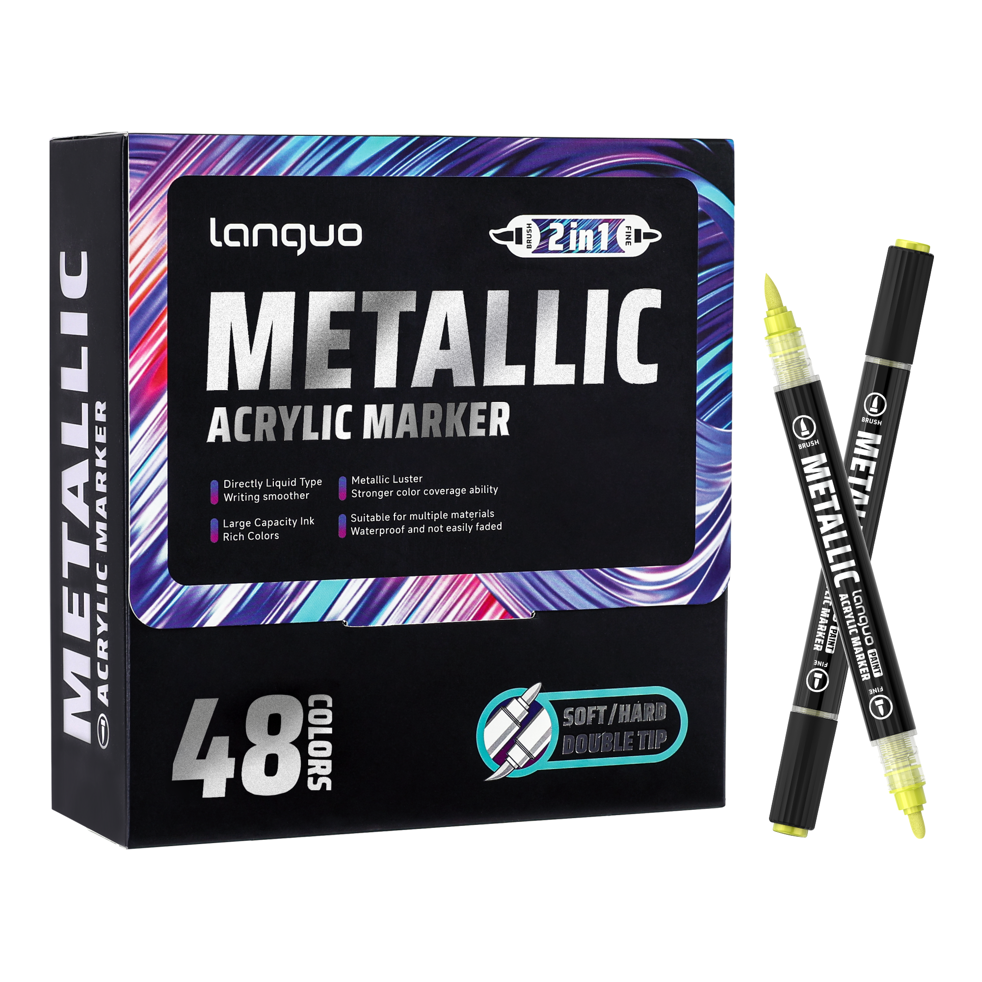 48 Colors Metallic Acrylic Paint Markers, Dual Tip Acrylic Metallic Markers Set (Brush & Fine)