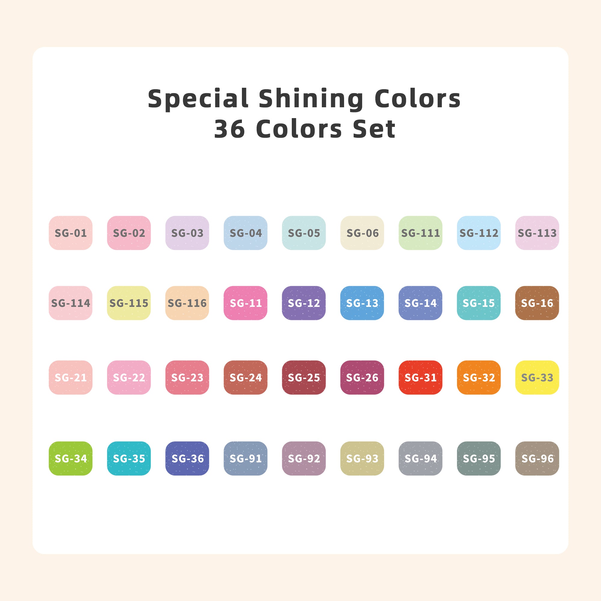 - Special Shining Multi-Color (36-Color Set): This 36-color glitter gel pen set offers a dazzling and diverse range of shimmering hues. Each pen features specially formulated sparkling ink, varying in intensity, creating an extra layer of radiance. Perfect for those who want to add a standout touch to their artwork